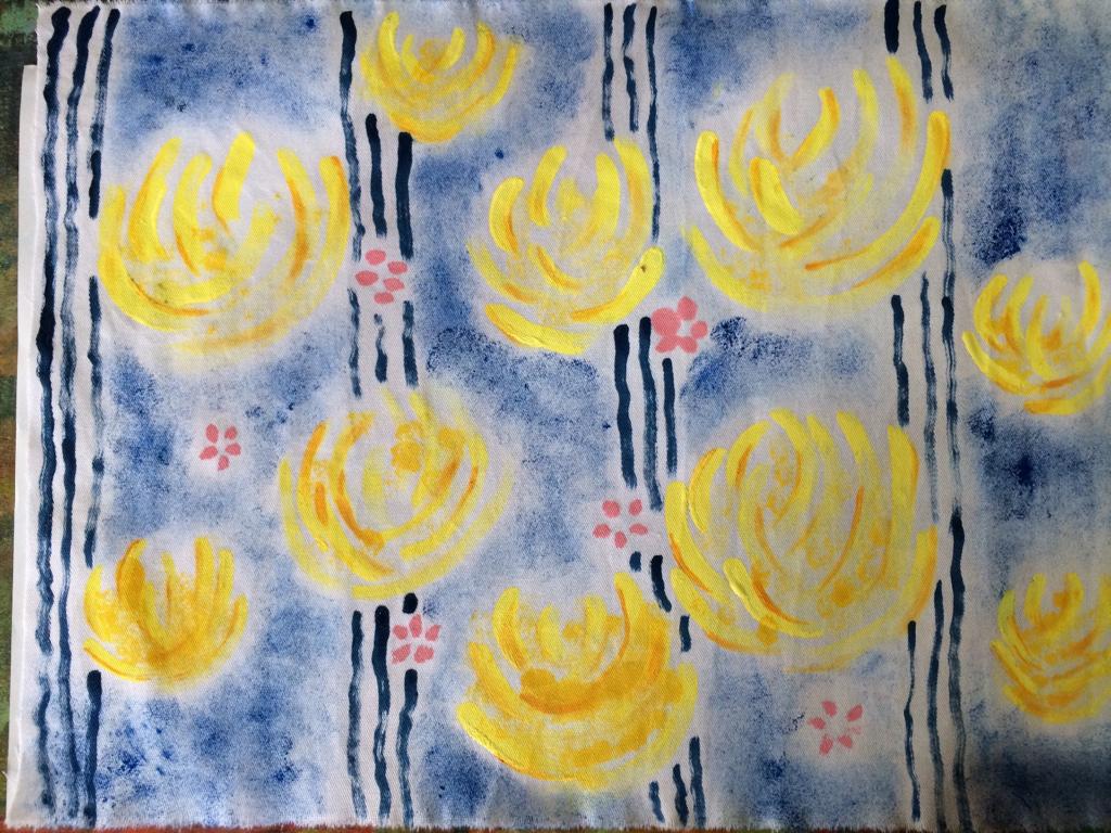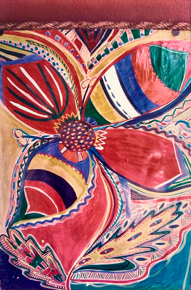 Pintei numa toalha de praia, num vestido todinho, etc…e anos mais tarde, depois de fazer Terapia Artística (Toronto e Florianópolis) fui fazer Curso de Estamparia Têxtil em Pomerode (Brasil) e em São Paulo, na Belas Artes.
