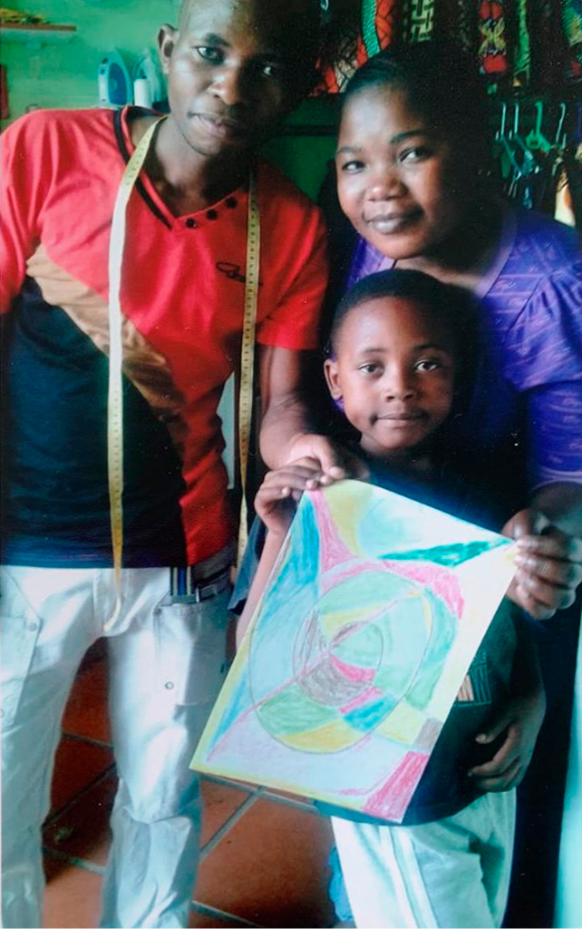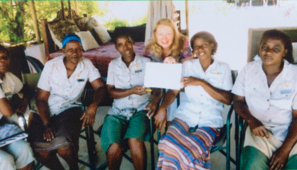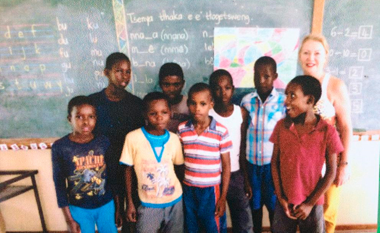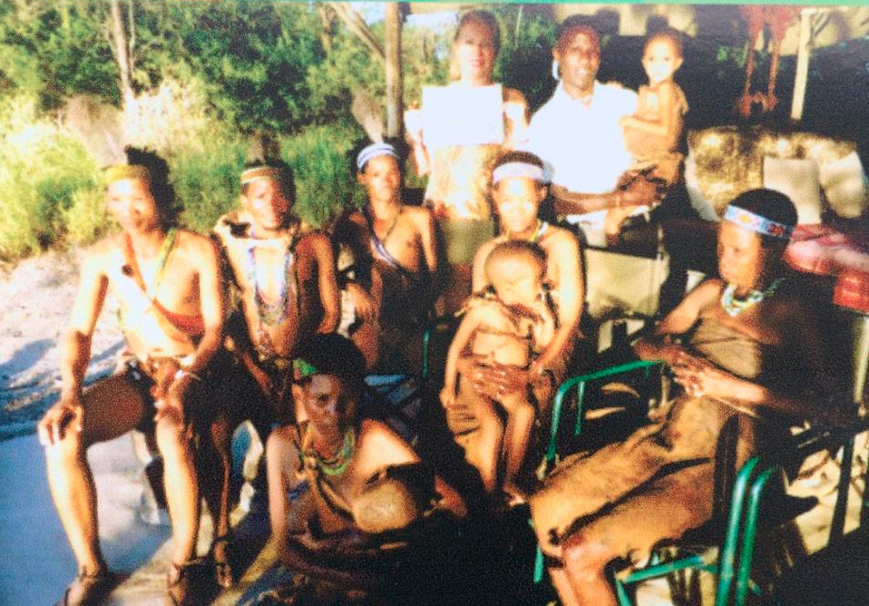 Em Botswana num Safári com os bosquimanos, com o pessoal da organização, com as cozinheiras e também numa escola em Maun com crianças do grupo de Arte;